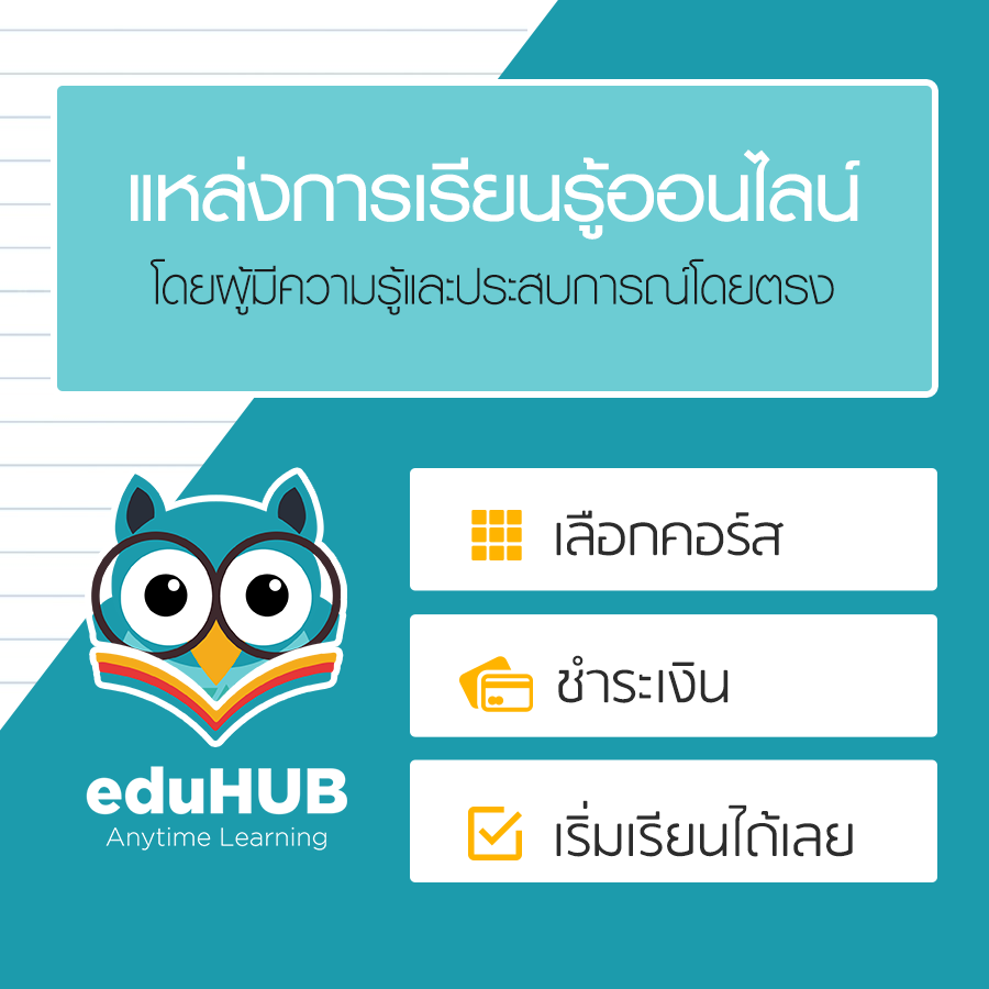 แหล่งการเรียนรู้ออนไลน์ ความรู้ไร้ขีดจำกัด สอนโดยผู้มีความรู้และประสบการณ์โดยตรง© 2018 Eduhub All rights reserved.